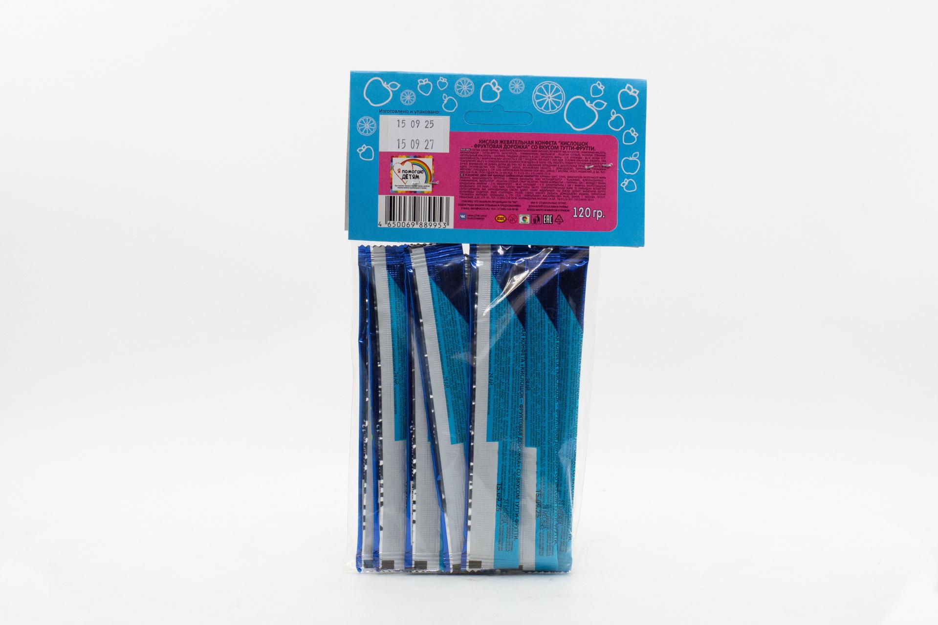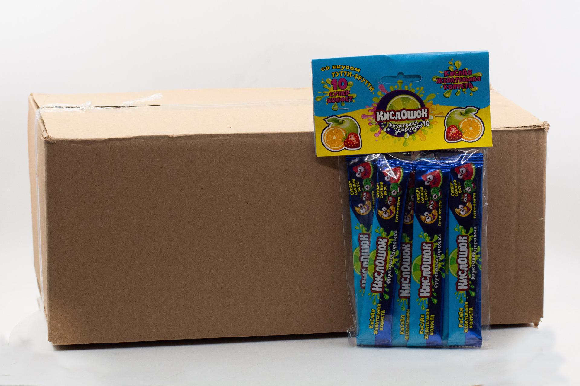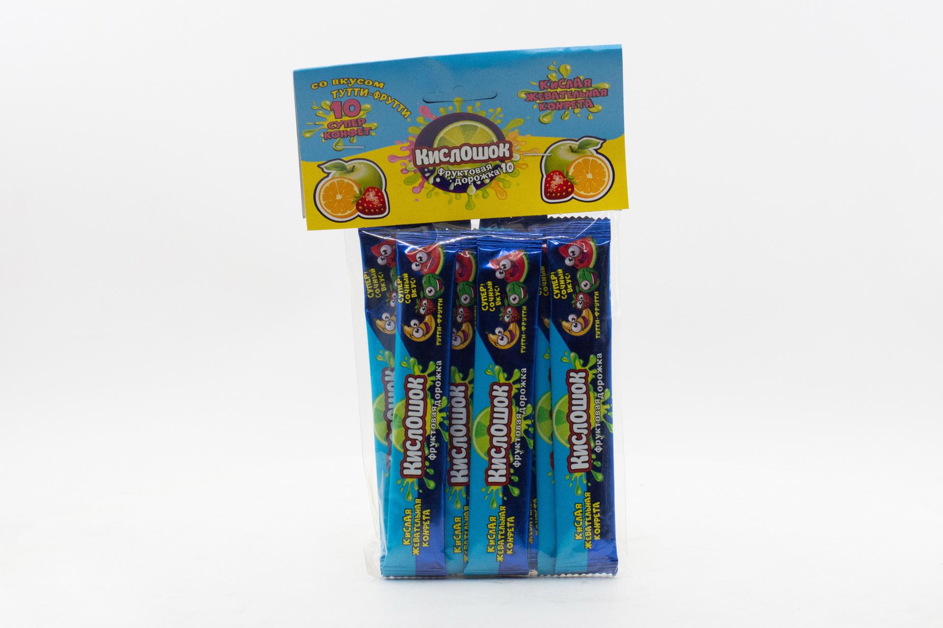 Кислая жевательная конфета Кислошок - фруктовая дорожка 10 со вкусом тутти-фрутти (Россия) 120г61,33 руб. за штуку (в упак. 36 шт.) |