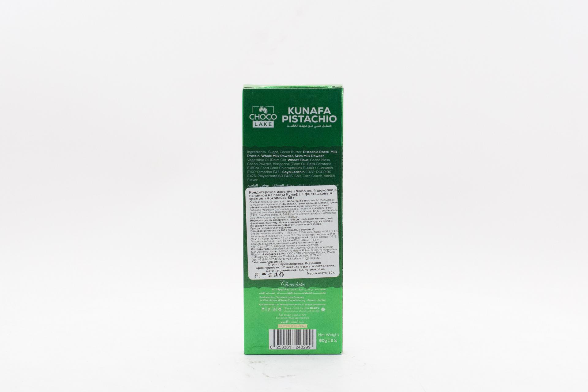 Молочный шоколад Choco Lake с начинкой из пасты Кунафа с кремом Бонелло (Иордания) 60г