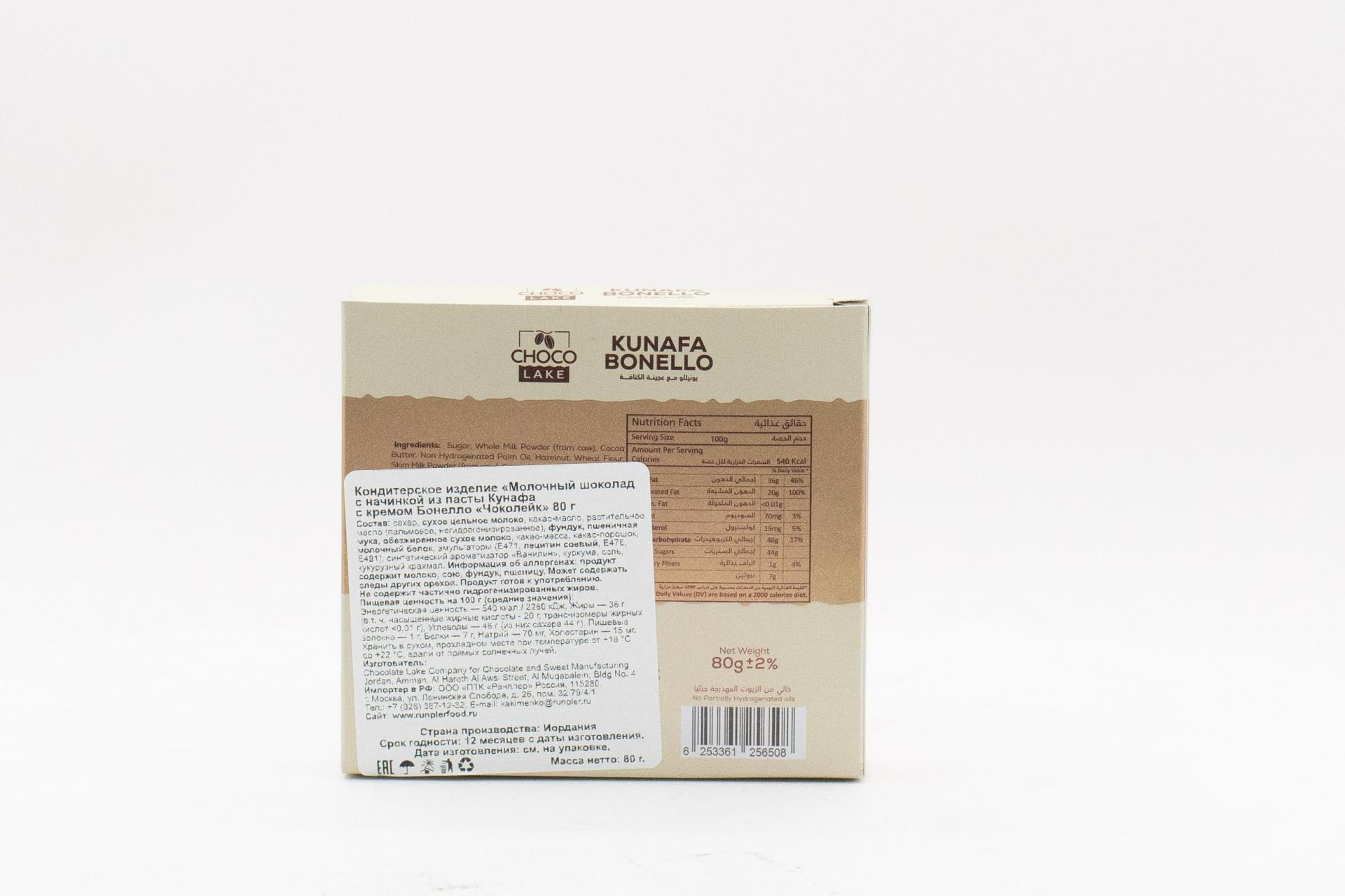 Молочный шоколад Choco Lake с начинкой из пасты Кунафа с кремом Бонелло (Иордания) 60г