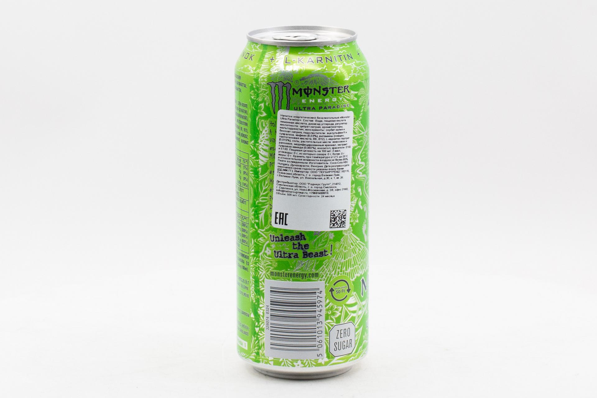 Напиток б/а газ. Энергетический Monster Ultra Paradise 500мл159,30 руб. за штуку (в упак. 12 шт.) |