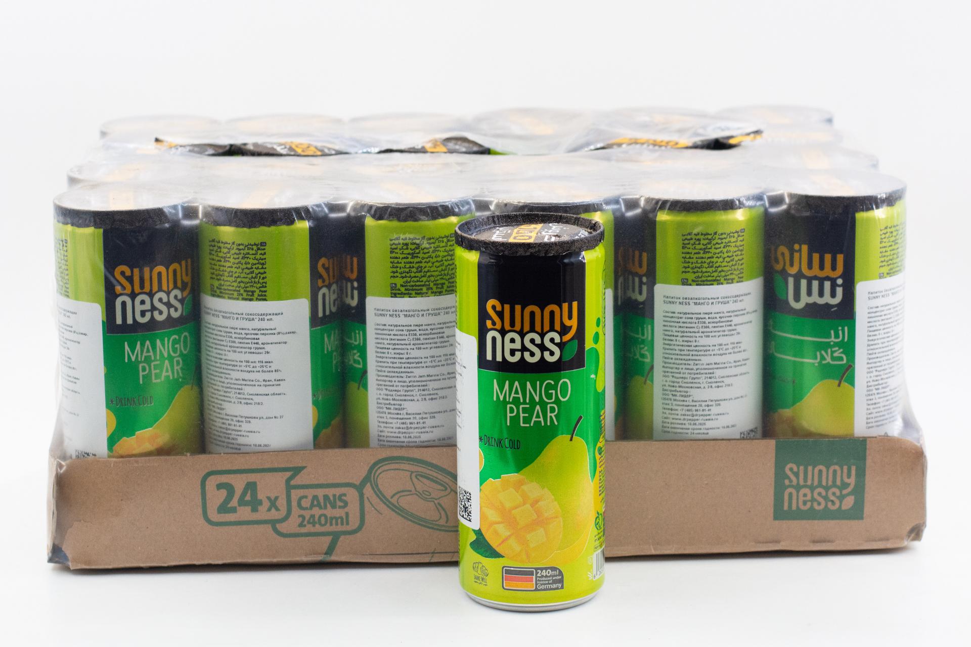 Напиток безалкогольный сокосодержащий Sunny Ness Манго и груша (Иран) 240мл ж/б49,90 руб. за штуку (в упак. 24 шт.) |